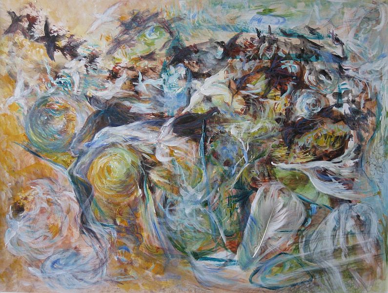 65 x 60 Mischtechnik (Pastel und Akryl) und Collage sowie Feder auf Karton, 2005 - 2006